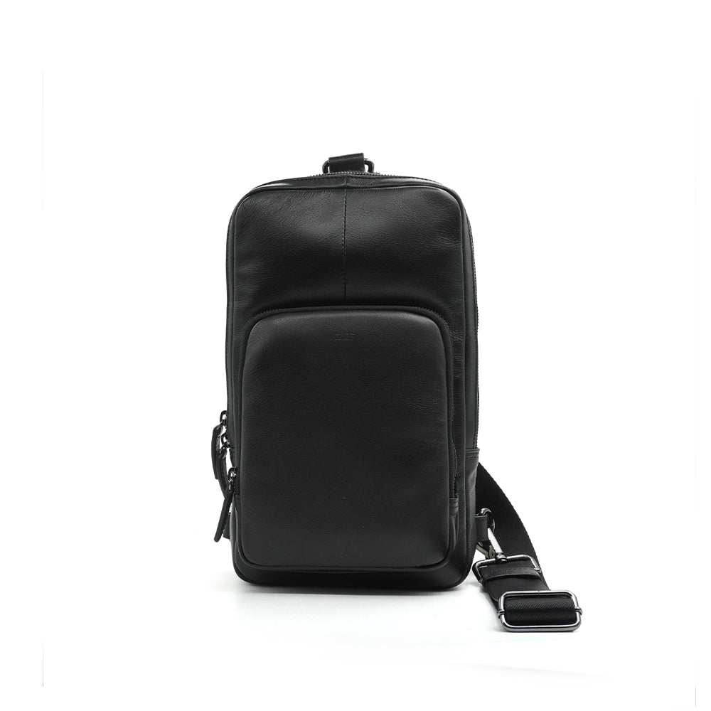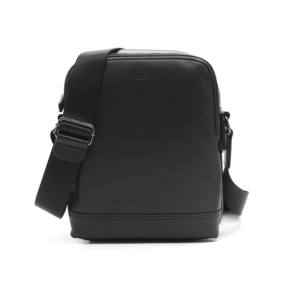 Alef Ridley Men's Leather Crossbody Shoulder Bag (Black)