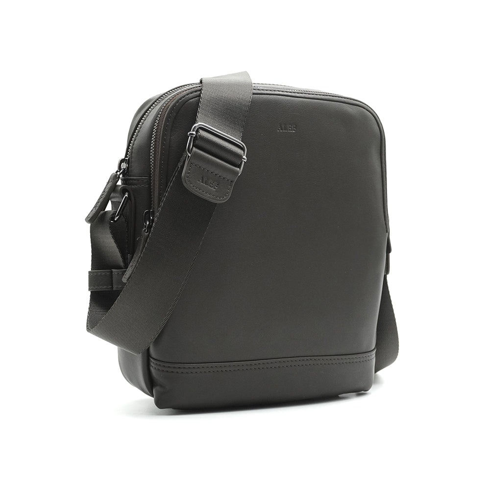 Alef Ridley Men's Leather Crossbody Shoulder Bag (Taupe)