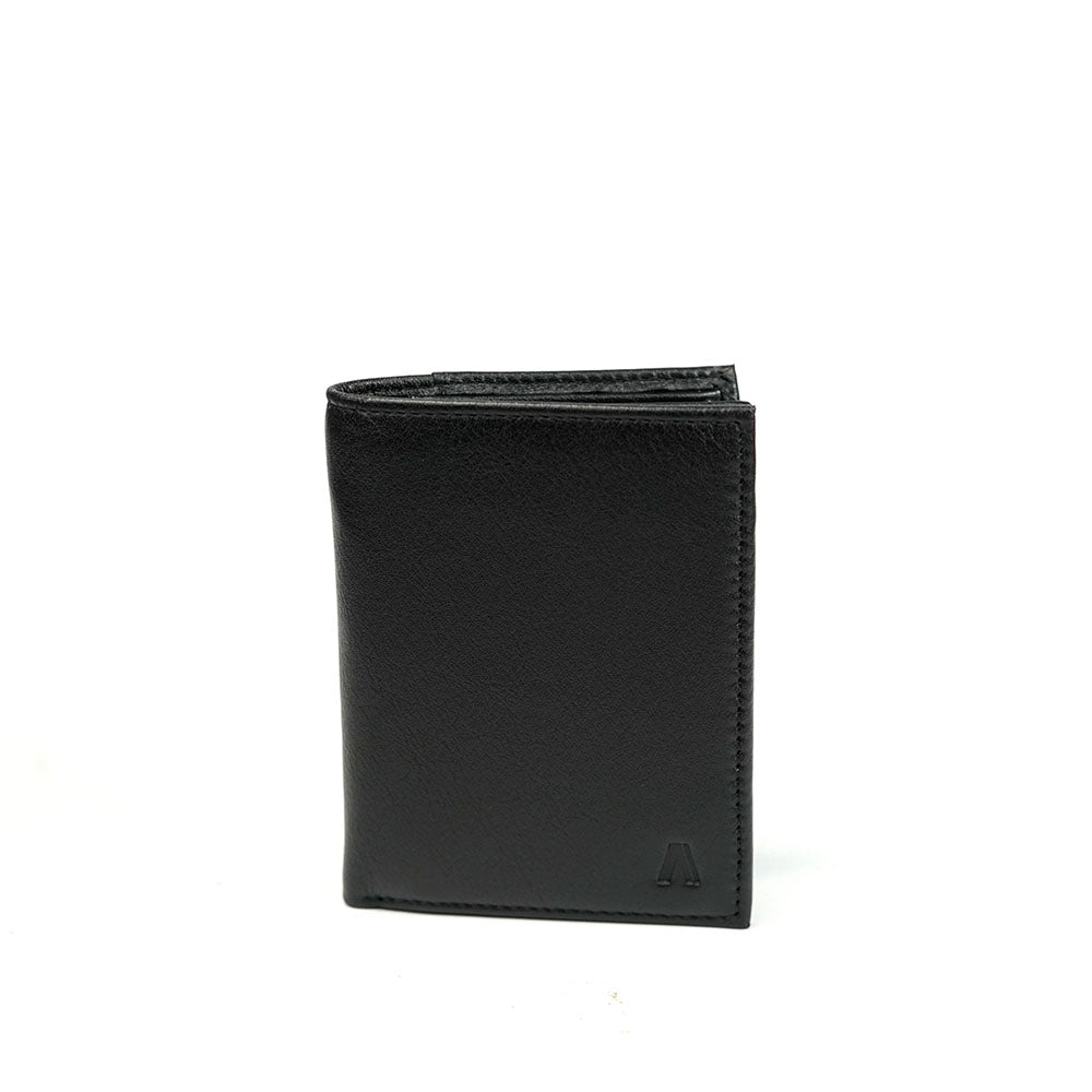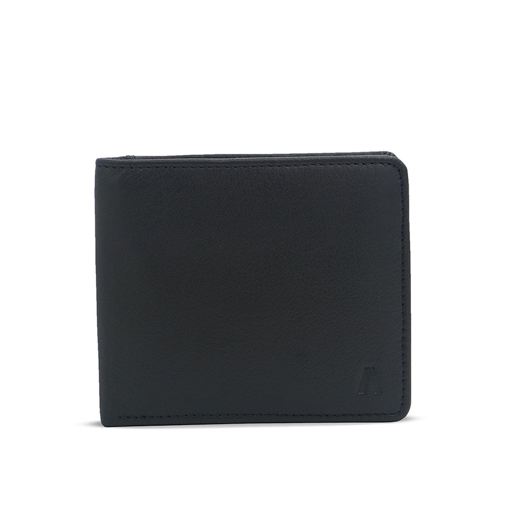 Alef Andrew RFID-Protected Bifold Men's Leather Wallet with ID Card Window (Black)