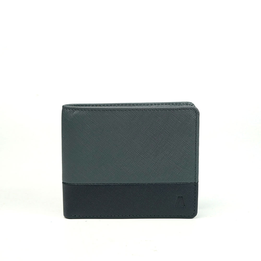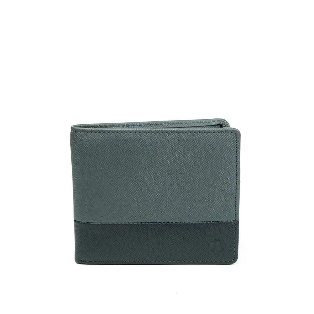 Alef Tokyo Men's Bifold Leather Wallet with Coin Compartment (Grey/Navy)