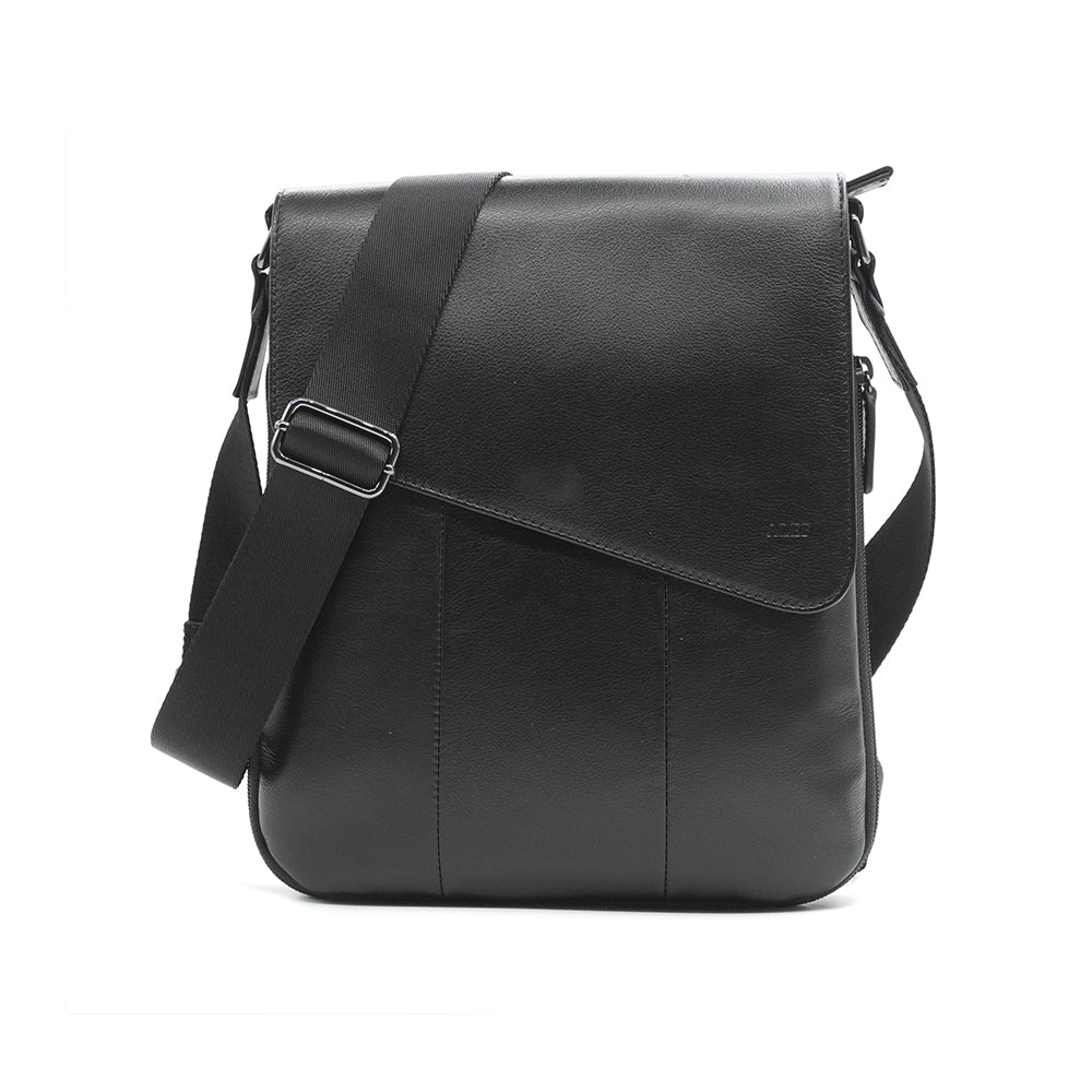 Alef Ridley Men's Leather Shoulder Bag with Flap (Black)
