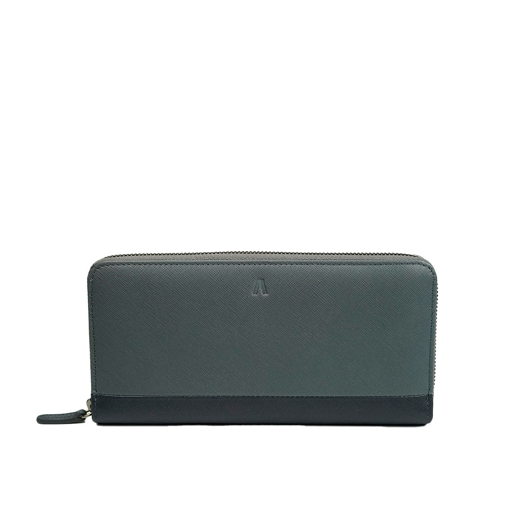 Alef Tokyo Long Leather Wallet with RFID-Protection (Grey/Navy)