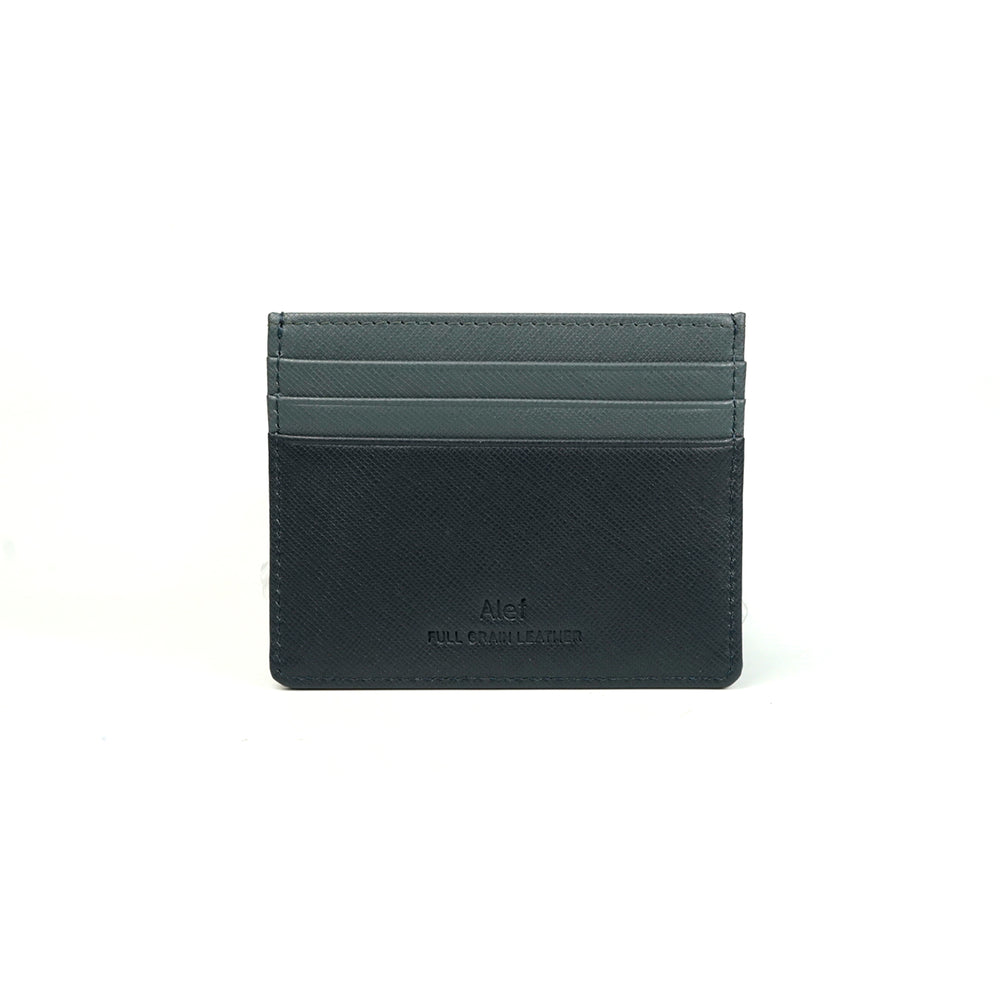 Alef Tokyo Men's Leather Cardholder with RFID-Protection (Navy/Grey)