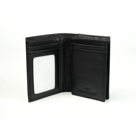 Alef Andrew RFID-Protected Bifold Men's Leather Wallet with ID Card Window (Black)