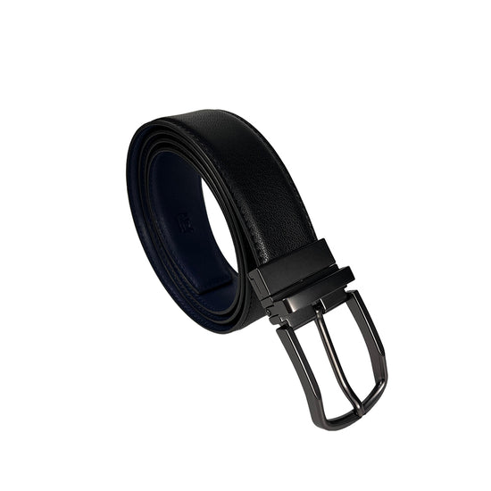 Alef Grange Men's Pin Buckle Reversible 35mm Slim Leather Belt (Black /Navy)