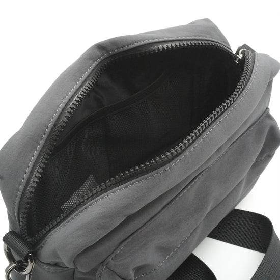 The Alef Kyoto Shoulder Bag is made with high quality nylon, featuring a zipped pocket and two internal mesh pockets to keep everyday essentials organized, as well as an adjustable strap for comfortable wear. Available in colours: Black and Grey.