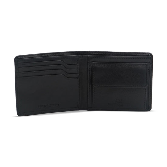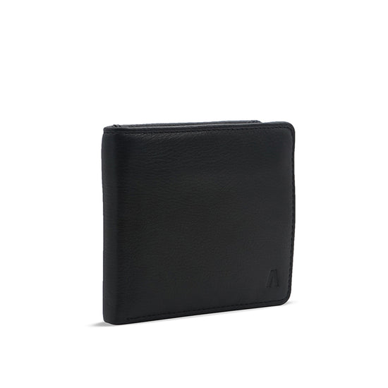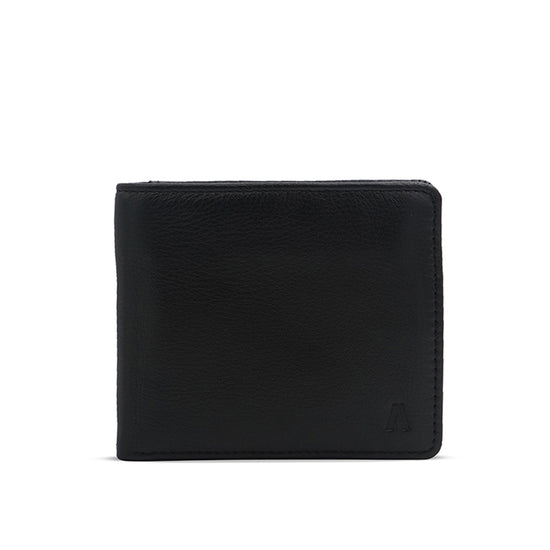Alef Rhine RFID Protected Bifold Men's Leather Wallet with Coin Compartment (Black)