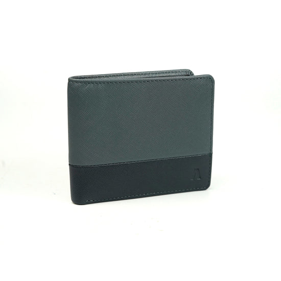 Alef Tokyo Men's Bifold Leather Wallet with Card Window (Grey/Navy)