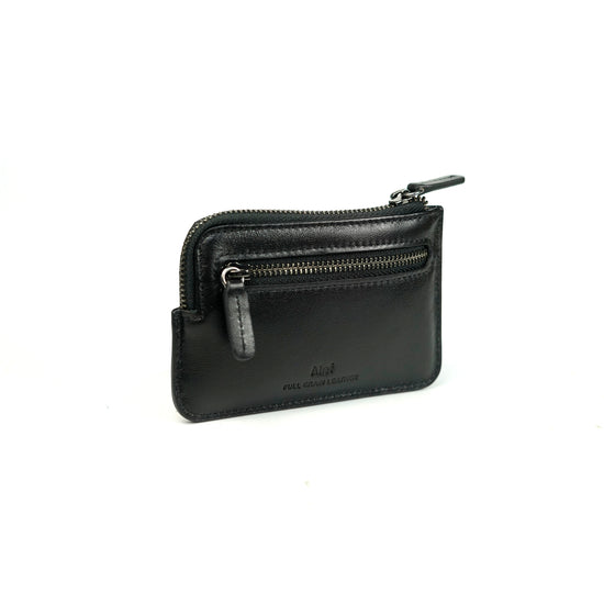 Alef Andrew Leather Coin Pouch with Key Ring (Black)